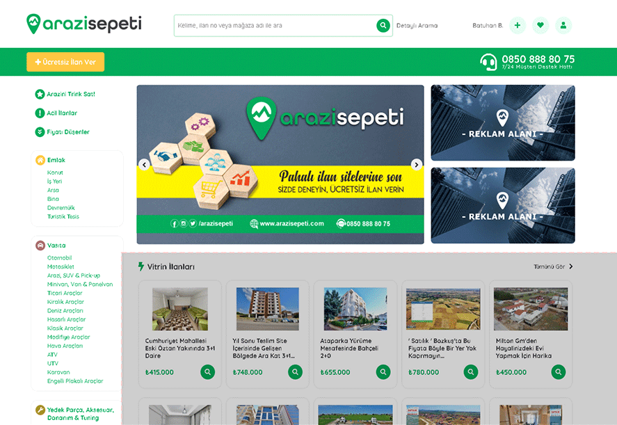 İlanınız her gün "milyonlarca kişinin ziyaret ettiği" arazisepeti.com, ana sayfasında yer alsın istiyorsanız Ana Sayfa Vitrini alabilir, İlk satan siz olursunuz.