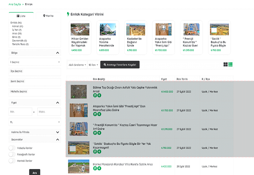 "İlan fiyatını düşürdüm, ilanım önde olsun" diyorsanız Fiyatı Düşenler alabilirsiniz.